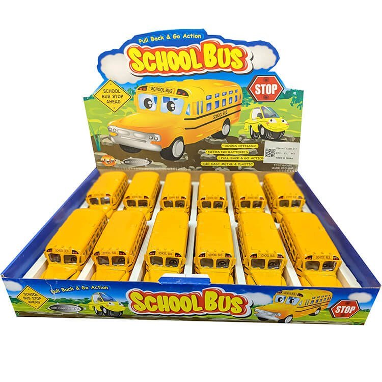 Yellow school bus with pull back & go action. BEEP BEEP. As long as you own this vehicle, dozens of children and their parents will be relying on you to get them to school. 12 pcs/display box.