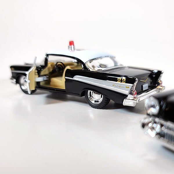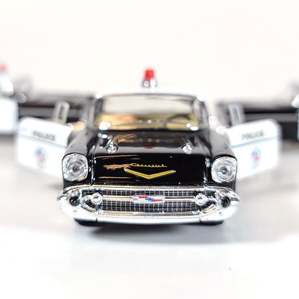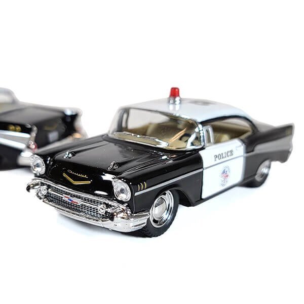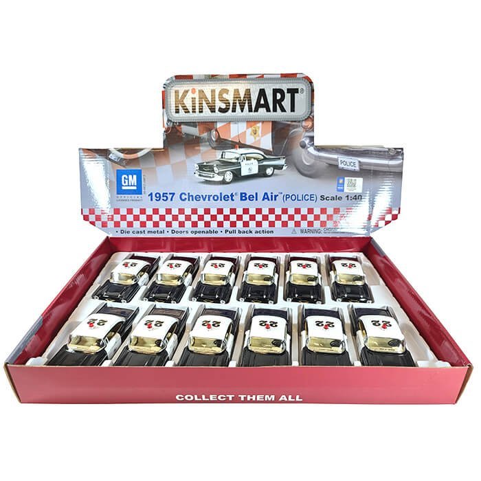 Pull back and go action. Doors openable. Emergency call? No problem. This 1:40 scale police vehicle is ready for anything. 12 pcs/display box.