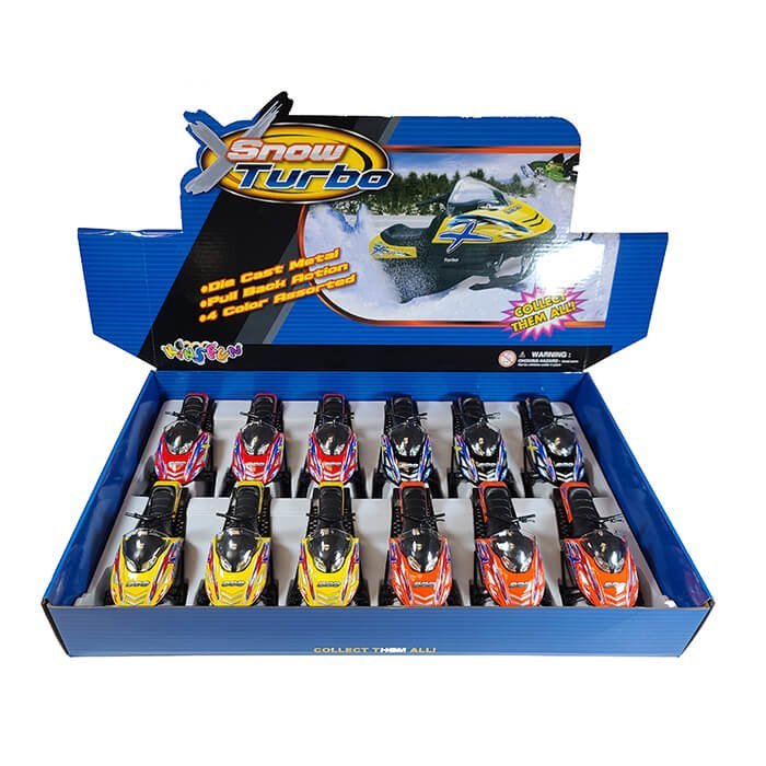 Pull back and go action. With this vehicle at your disposal and a bit of imagination, you’ll soon be flying over the Arctic snow. 4 assorted colors. 12 pcs/display box.