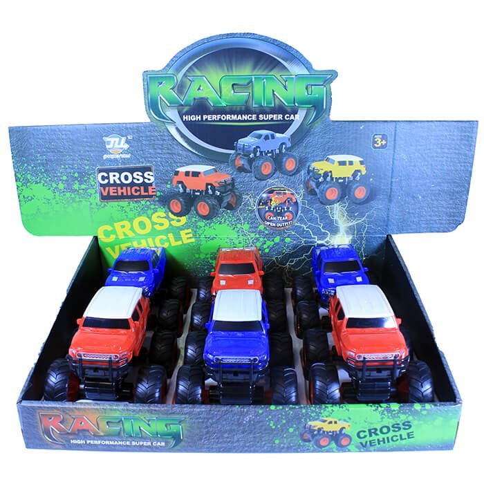 You can travel through rough terrain with this friction powered off road vehicle! Comes in 2 assorted styles and 2 assorted colors. 6 pcs/display box.