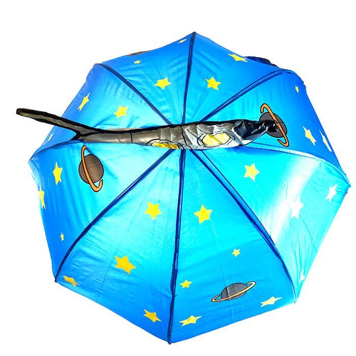 Kid’s size umbrella with the design of an air shuttle. Umbrella has a 28″ diameter. Each in a plastic sleeve.