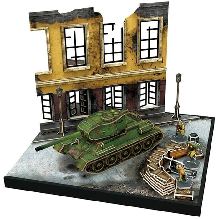 Push fit WWII military scene puzzle with no tools needed to assemble. Made of paper & EPS foam boards. Measures 13″x12″x10.25″ when fully assembled. Complexity: 7 out of 8 stars. Printed box.
