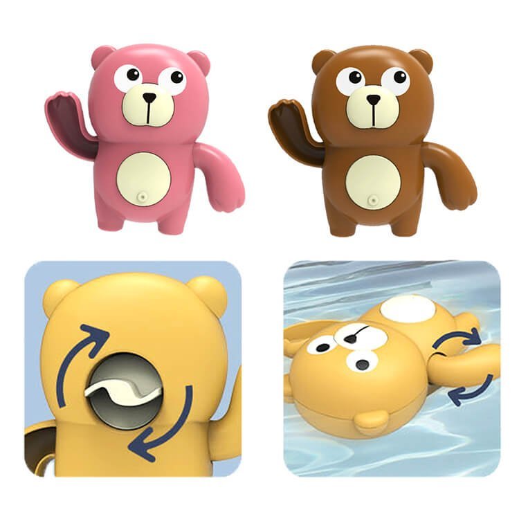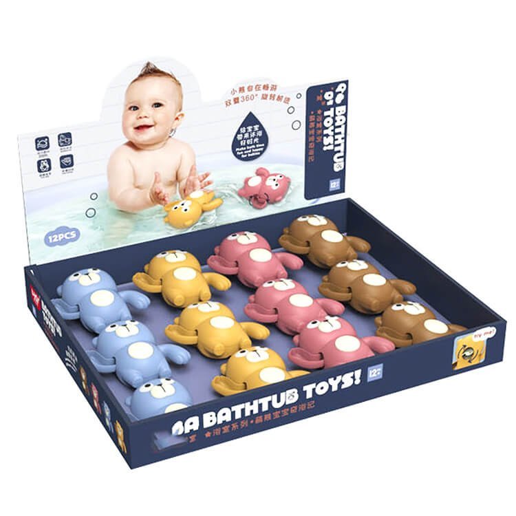 Make bath time more fun with your own swimming bear! Just wind the knob and release to see the bear swim aroung the tub. Assorted colors. 12pc/display box