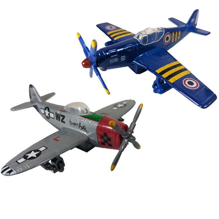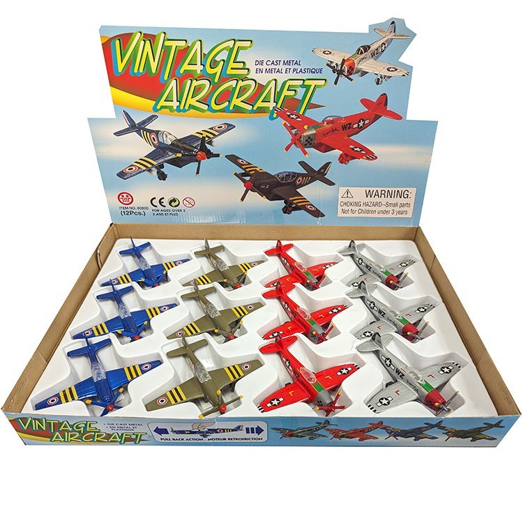 Vintage plane with pull back and go action. Soar through the skies unchallenged. With these planes, nothing will stop you. 4 assorted colors. 12 pcs/display box.